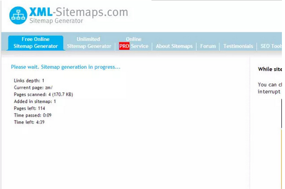 3.在线生成sitemap是需要一定时间的,一定需要耐心,耐心等待!!!
